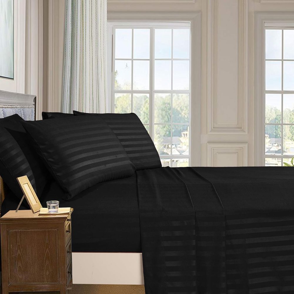 Elegant Comfort Best, Softest, Coziest 6-Piece Sheet Sets! – 1500 Premier Hotel Quality Luxurious Wrinkle Resistant 6-Piece Damask Stripe Bed Sheet Set, Queen Black